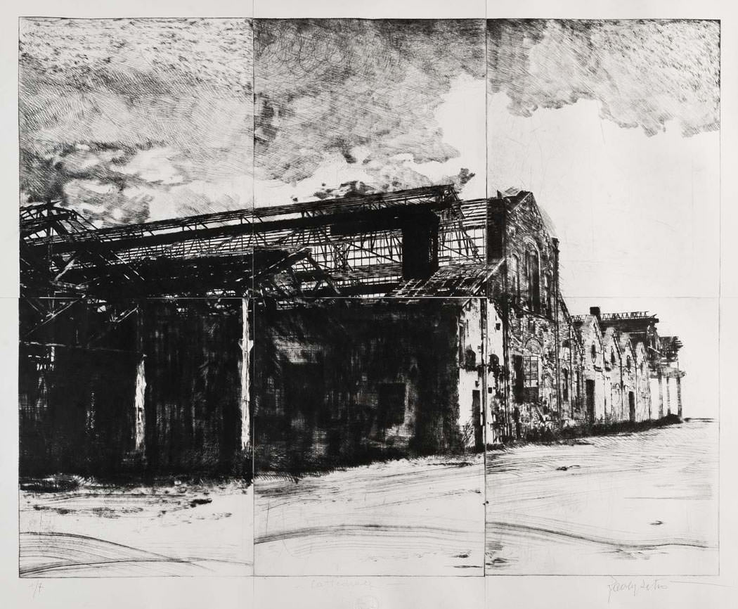 Le strutture industriali, oggi quasi totalmente abbattute offrono, attraverso le incisioni di Paolo Petrò, una riflessione indiretta sul patrimonio architettonico del mondo del lavoro del secolo scorso, e un nuovo valore estetico in via di estinzione. Le opere amplificano l’attuale modo di concepire questo patrimonio che invece di essere valorizzato viene abbattuto, cancellando le tracce di un passato prossimo fondamentale per lo sviluppo industriale della città. Queste tracce profonde nelle incisioni su lastra si imprimono anche nella memoria nel tentativo di renderle indelebili.