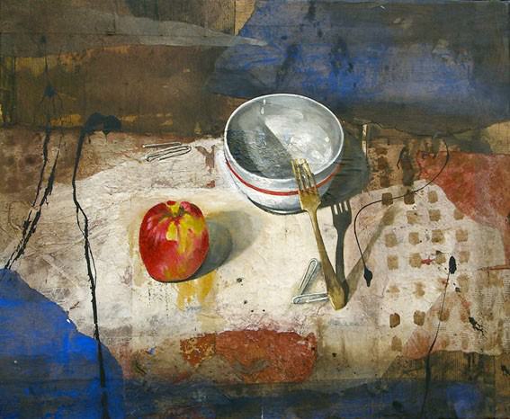 Così cresce la riflessione sulla solitudine della figura umana - e delle cose delegate a rappresentarla (a tramandarla) - entro lo spazio breve dell’esistenza. La luce si è fatta in Petrò più accorata, apprensiva, eppure più minerale, fredda. Il fremito di vita e la sua mummificazione, la natura corposa (la materia ora è più densa) e la sua vanità. Petrò, nella vena meditativa nutrita dalla sua lunghissima esperienza d’incisore, ribadisce, sulla sensualità della pittura, il dominio mentale, l’arbitrarietà del colore e la spettralità della luce. Dell’incisore, trasporta in pittura la concentrazione intensa, l’attenzione amorevole al dettaglio, la preci-sione tecnica. Con acquaforte, acquatinta e bulino, ha sempre estratto gli oggetti con fermo nitore da un buio felpato, carico d’atmosfera e inclinazione sentimentale, o da un bianco di dissolvenza filmica, come in un lampo di chiarezza mentale, ma an-che di spettrale incombenza. Ma Petrò, prima d’approdare all’olio, aveva provato anche a reggere in equilibrio sulla inquieta pozza dell’acquerello tutte le piccole cose dello studio, nella quiete appartata d’una vecchia casa contadina ristrutturata in un borgo di Franciacorta, a evocare l’universo tradizionale della natura morta pittorica, laddove sentimenti fondamentali dell’esistenza sono stati affidati a cose apparentemente sorde e senza vita. L’acquerellista rivelava come i