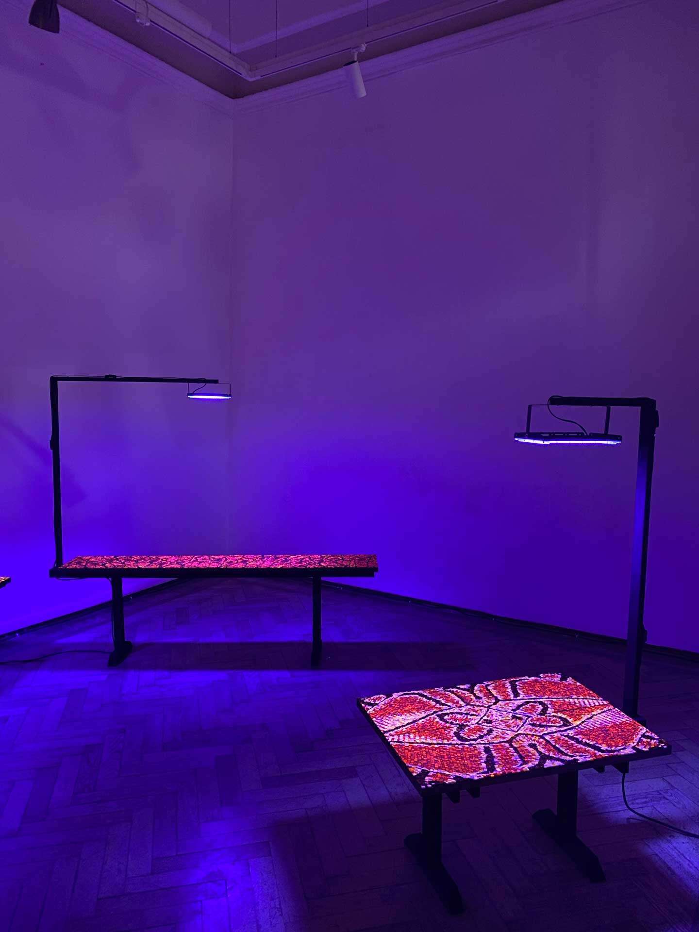 Phototaxis nasce dalla curiosità di indagare, illuminando con una ’nuova luce’ le piastre in smalto colorate che vengono prodotte da Orsoni e conservate nella stanza della fornace denominata Biblioteca del Colore. Da qui nascono i fregi di Paolo Pretolani realizzati in mosaico artistico Orsoni.