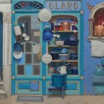 Una composizione scenografica , di oltre sei metri di lunghezza, che raffigura oggetti di uso comune e botteghe dal sapore antico, come l’olaro, l’ornatore , l’emporio, restituiti in pittura in modo sorprendentemente fedele.