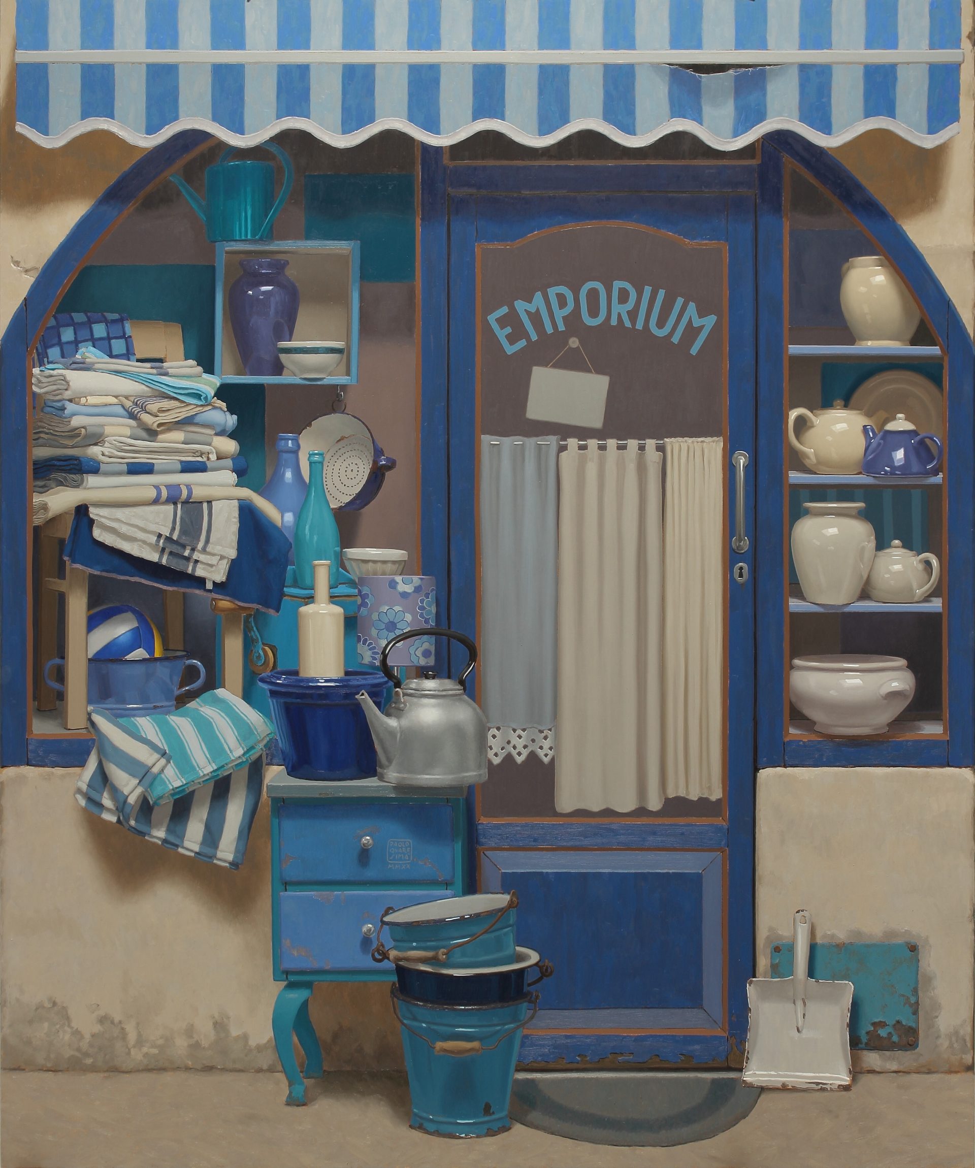 Il progetto, appena ultimato dall'artista meranese, consiste in un pentittico di oltre 6 metri di lunghezza, una composizione scenografica di oggetti di uso comune e botteghe dal sapore antico, come l'olaro, l'ornatore , l'emporio, restituiti in pittura in modo sorprendentemente fedele.