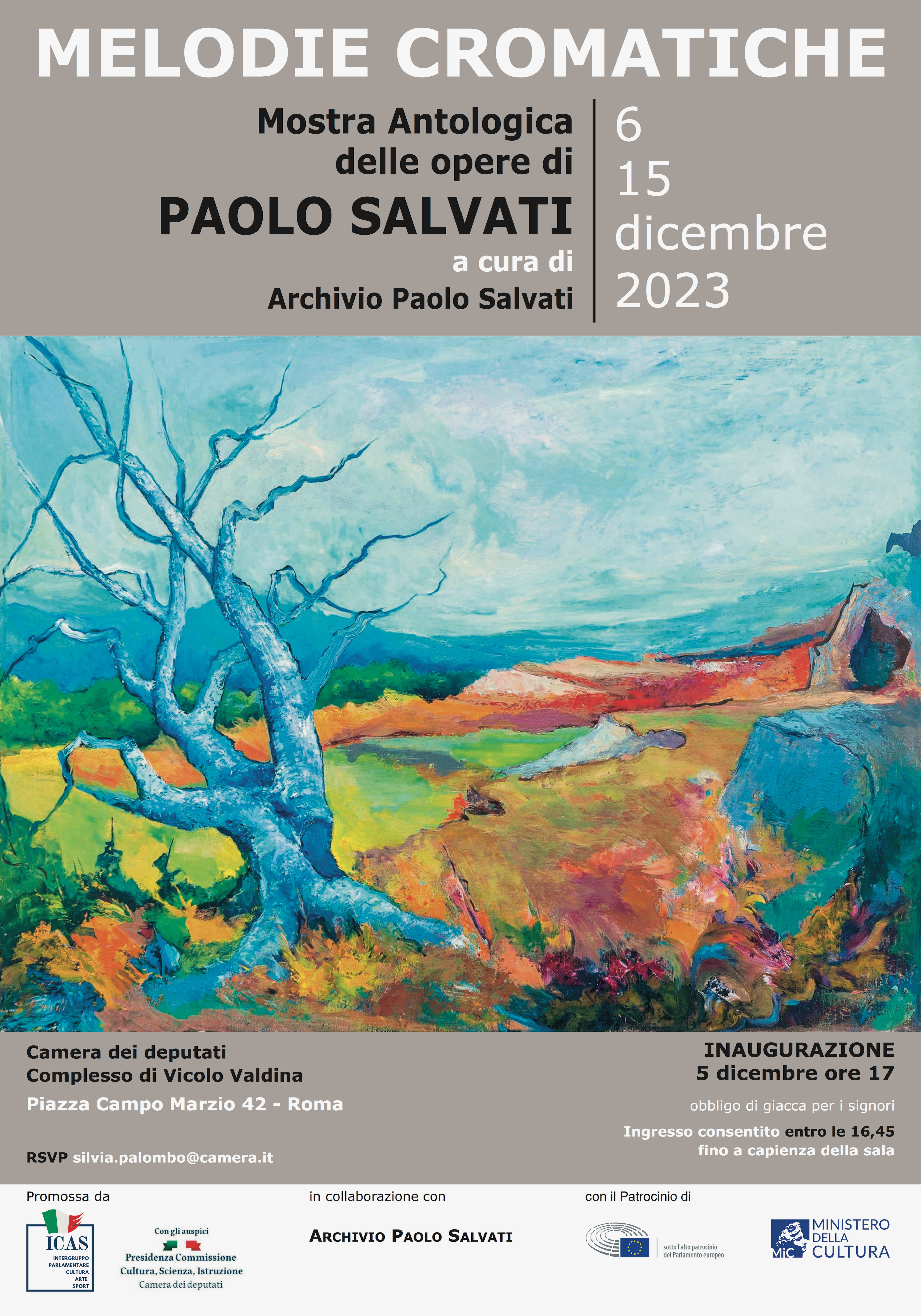 La mostra dal titolo Melodie Cromatiche è formata da una significativa selezione di dipinti eseguiti dagli anni settanta agli anni duemiladieci dal pittore italiano Paolo Salvati (1939-2014). L’artista, tra quelli della sua generazione rimasti fedeli alla figurazione, ha posto al centro della ricerca artistica il colore, con cui ha realizzato lirici paesaggi visionari. Salvati diversamente da molti della stessa generazione ha sempre asserito il valore della pittura pura.