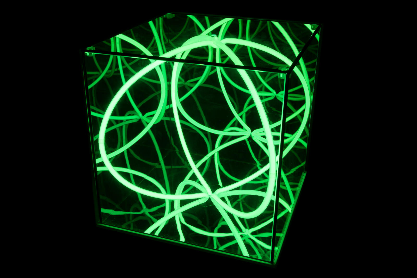 Fondamentale attenzione verrà data alle opere chiamate “Ludoscopi”, scatole magiche in grado di creare profondità illusorie grazie alle infinite possibilità combinatorie di semplici elementi geometrici (cerchio-quadrato-triangolo-esagono) e materiali altrettanto semplici come vetri specchianti e neon.
