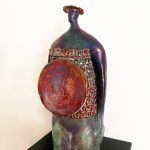 Nato a Scandicci nel 1943, Paolo Staccioli inizia la sua esperienza di artista negli anni Settanta del Novecento, esordendo come pittore e facendosi presto notare in ambito locale. Al principio degli anni Novanta la necessità di sperimentare nuovi linguaggi espressivi lo spinge a Faenza, nella bottega di un ceramista locale, Umberto Santandrea, dove apprende le tecniche di quest’arte. È qui che Staccioli realizza i suoi primi vasi, dapprima con la tecnica della ceramica invetriata, poi sperimentando la cottura a “riduzione”, che gli consente di ottenere straordinari effetti d’iridescenza e lucentezza.