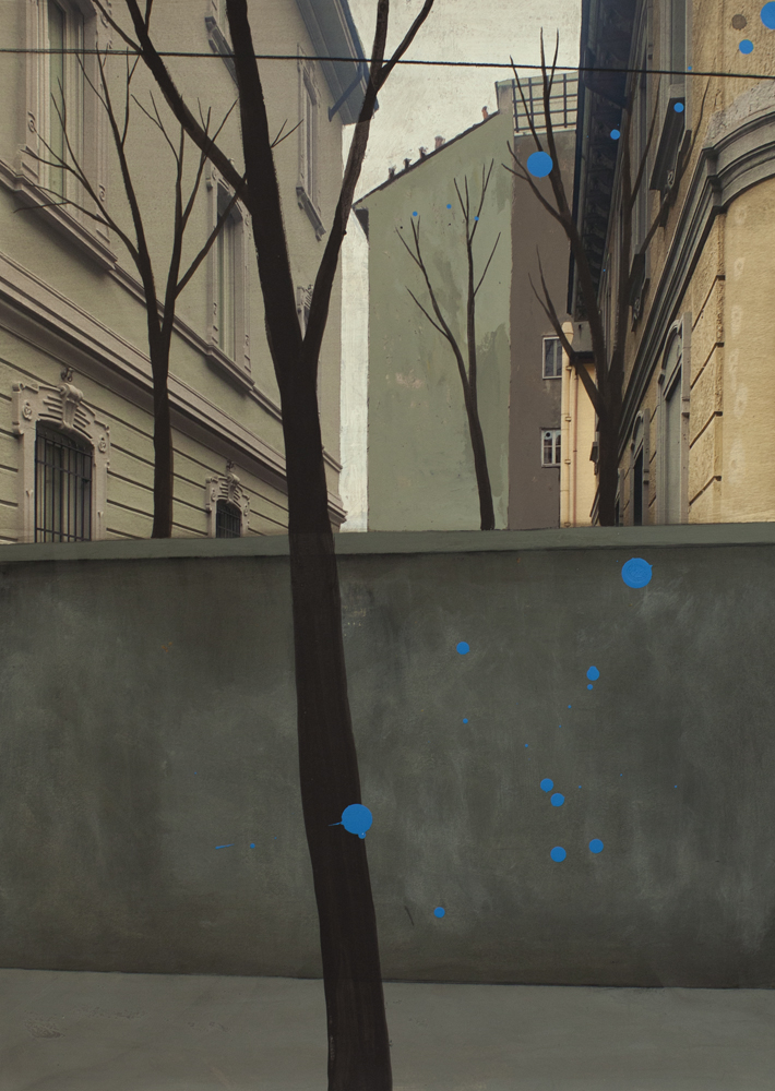 Nel nuovo progetto La città nuova, partendo dai propri scatti fotografici, Ventura ha ridisegnato la città, l’ha reinventata con la pittura, facendo sparire il superfluo e tutto ciò che, a suo giudizio, è inutile e brutto per mettere un po’ d’ordine alla realtà.