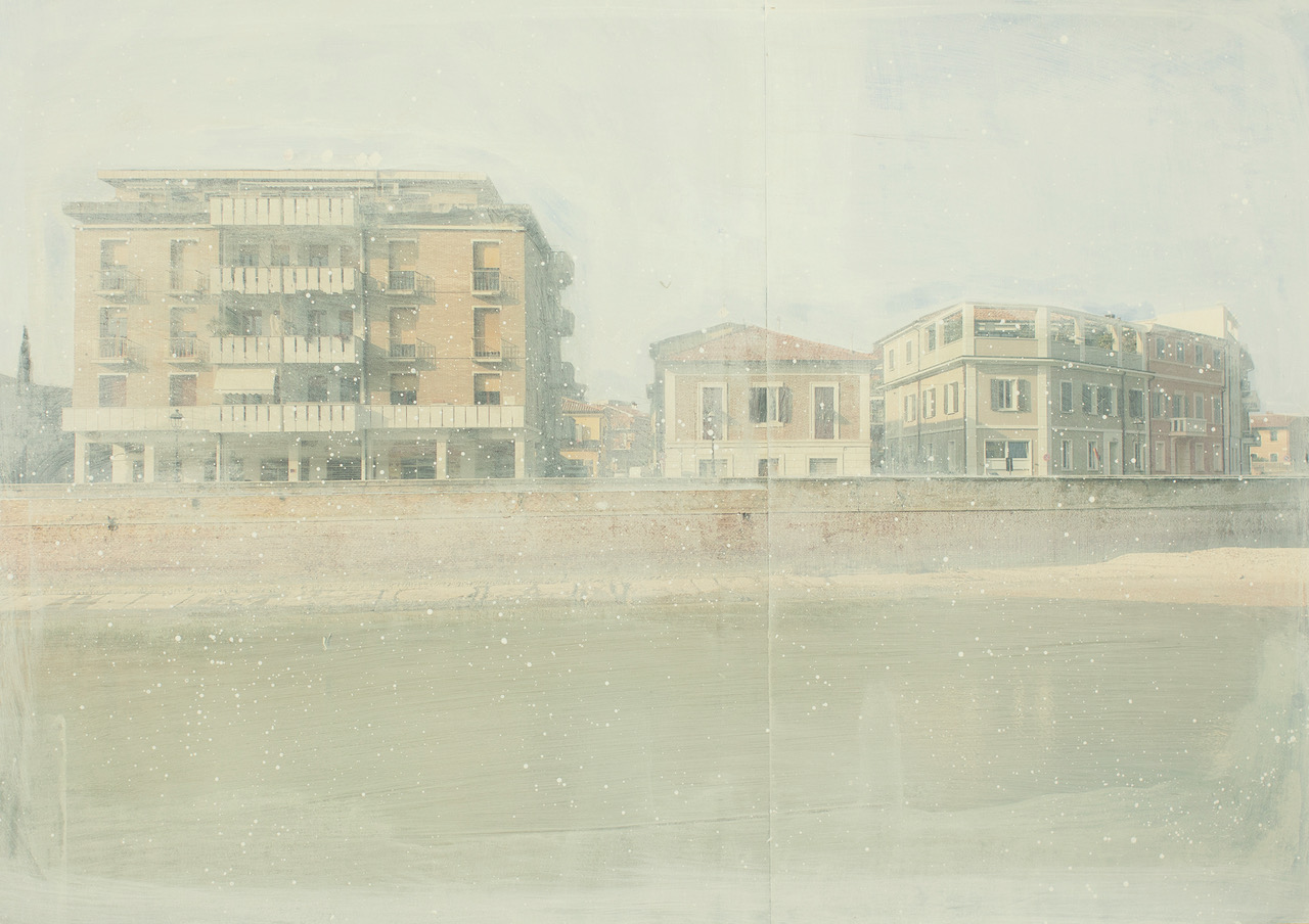 I lavori sulle città e i loro landscape sono uno dei filoni a cui si rivolge la ricerca e la poetica di Paolo Ventura, paesaggi non riconoscibili se non a volte per sparuti dettagli, architetture e palazzi che vengono isolati dal contesto e che servono come sfondo per le sue ricostruzioni immaginifiche, ricreando quelli che potrebbero essere ideali vedute italiane, prive di caratterizzazione eppure sempre familiari e che si potrebbero ritrovare in qualsiasi città. Non è la realtà che già esiste ad interessare l’artista, ma le infinite possibilità di poter creare e raccontare quello che non esiste.