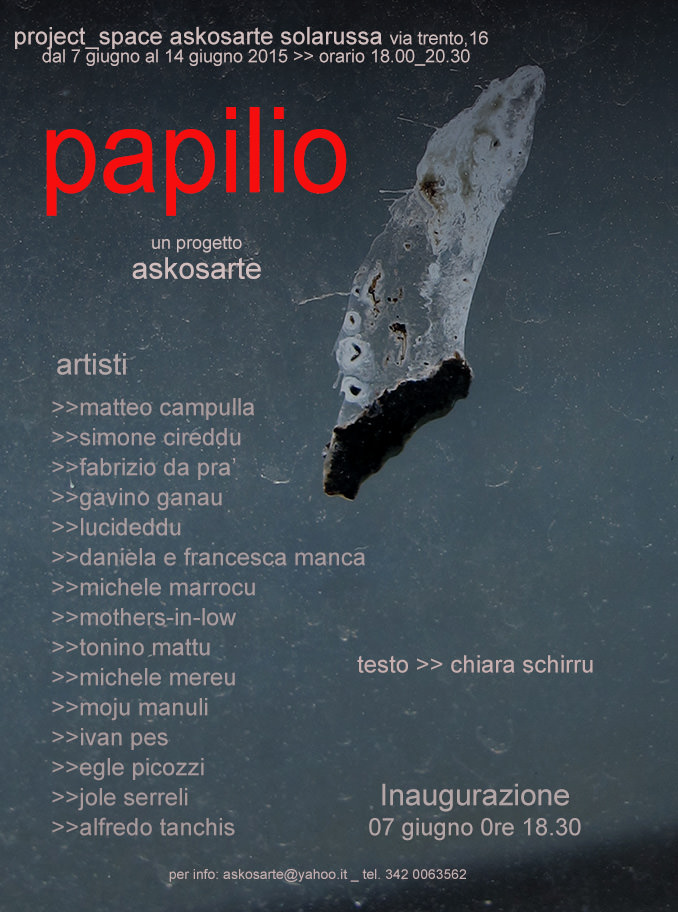 Papilio scava dentro questo indivisibile legame, che ri-unisce ciò che solo esteriormente si dimostra diviso, e porta in mostra, come metafora, la farfalla: fragile ed effimera creatura, ricoperta di lamelle talmente sottili da sembrare polvere, ma fondamentali per il suo bilanciamento e per il volo. Basta prenderne una per le ali, perché facciamo esperienza, sfarinati tra le dita, dei suoi colori e insieme della sua vita.