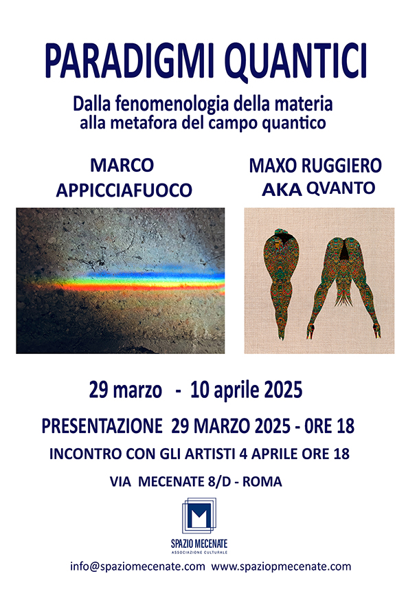 Siamo lieti di presentare la mostra bi personale PARADIGMI QUANTICI degli artisti Marco Appicciafuoco e Maxo Ruggiero aka QVANTO presso Spazio Mecenate dal 29 Marzo al 10 Aprile.