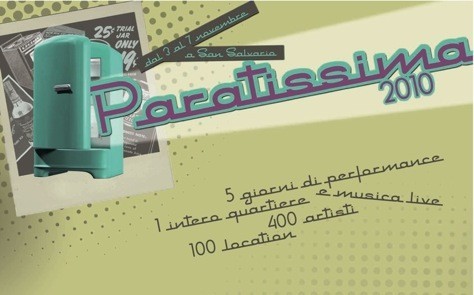 Più di 450 giovani artisti e creativi, circa 160 location espositive, 3 progetti speciali, 12 eventi paralleli, oltre 150 performance live: sono questi i numeri di PARATISSIMA, l’evento “OFF” di Artissima in programma dal 3 al 7 novembre nelle strade, nelle piazze, nelle botteghe degli artigiani, nei negozi, negli studi professionali e nei locali storici di San Salvario.