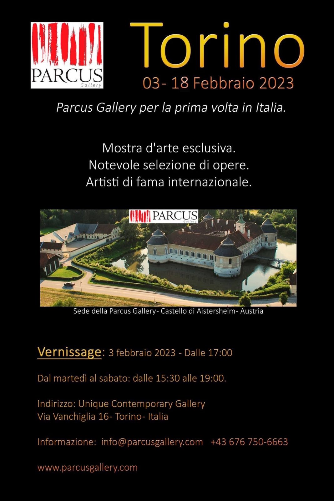 Parcus Gallery, galleria innovativa nel mercato delle arti, si presenta a Torino con alcuni dei suoi artisti internazionali, per la prima volta sul territorio italiano. La mostra collettiva vede il confronto di artisti più diversi, che si esprimono con vari stili e linguaggi espressivi offrendo al pubblico una vetrina di proposte contemporanee in vari campi delle arti.