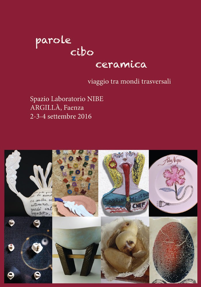 Spazio Nibe propone la terza fase del progetto Parole/Cibo/Ceramica questa volta nella prestigiosa cornice di Argillà 2016, importante biennale di arte ceramica a livello europeo ed internazionale. Alla mostra collettiva partecipano 21 artisti che hanno cercato di mostrare la relazione tra la letteratura, il tema del cibo e l'arte ceramica. Nella mostra di Faenza partecipano gli artisti che hanno esposto le loro opere nelle due precedenti tappe del progetto nella sede milanese di Spazio Nibe. Ad essi si affiancano artisti selezionati tramite un bando che ha voluto coinvolgere altri ceramisti che non avessero ancora partecipato al progetto. La mostra è una valida occasione che permette di vedere la dinamica e possibile relazione tra la letteratura e la ceramica aldilà di qualsiasi barriera che nega la trasversalità dei campi artistici.