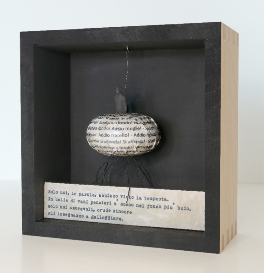 Il senso della mostra Parole in scatola si avvicina piuttosto a una Spoon River degli oggetti dimenticati, in cui, con pochi versi, li si riconnette saldamente al filo della memoria.