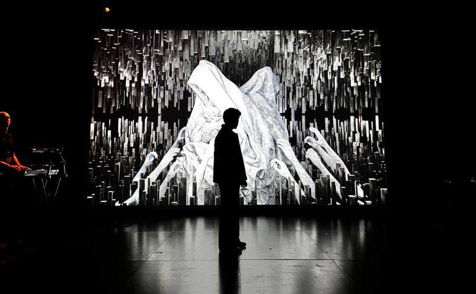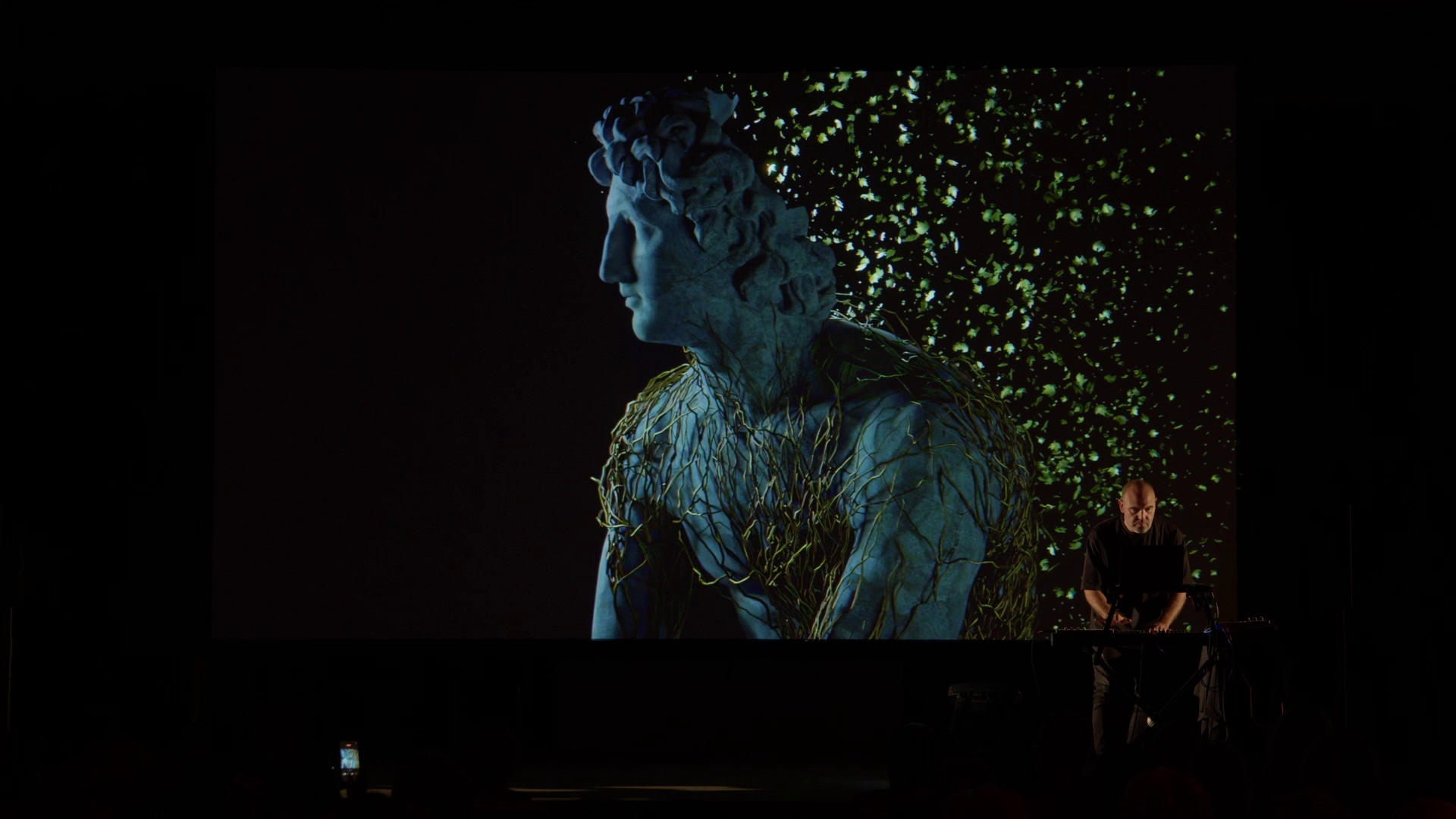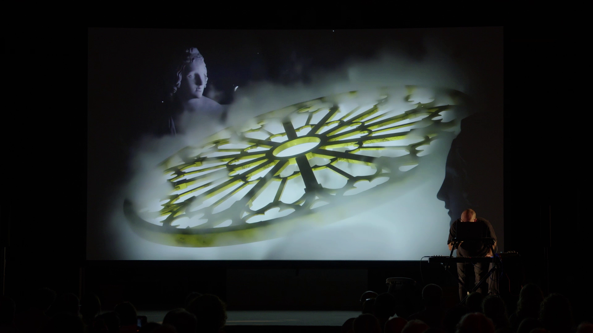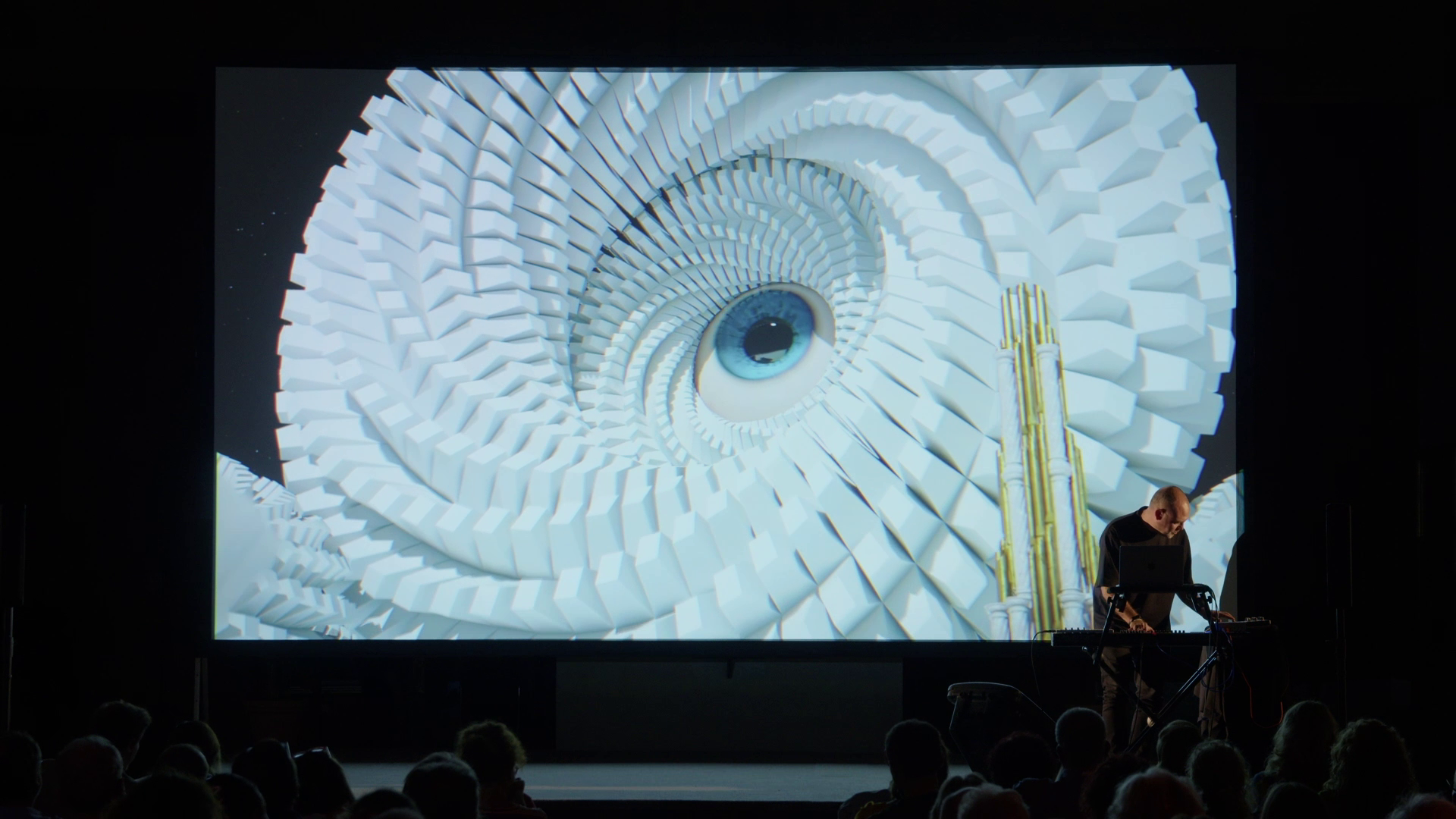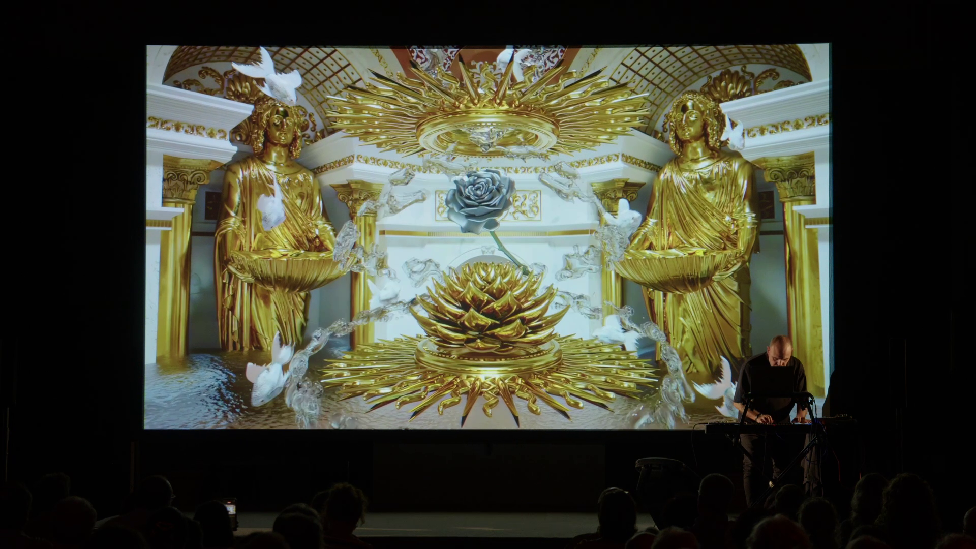 Accanto alla musica, le animazioni create da SVCCY (anche lui sul palco con Pasquale Corrado per suonare l'EWI) trasformano lo spazio in un ambiente sensoriale immersivo. Proiettate su grande schermo, le animazioni digitali dialogano con la partitura in tempo reale: paesaggi cosmici, rovine metafisiche, presenze oniriche accompagnano lo spettatore in un viaggio simbolico che esplora la morte, la trascendenza e il sacro. Ogni elemento visivo è parte di una drammaturgia autonoma, perfettamente sincronizzata con la musica, capace di generare un impatto emotivo profondo.