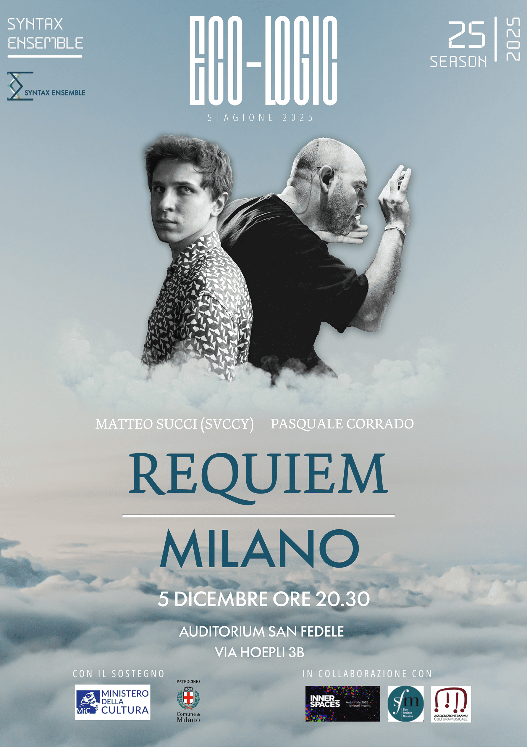 Un evento che unisce il rigore della musica colta con il linguaggio pulsante della visual art contemporanea: nasce così REQUIEM, un progetto che segna l’incontro inedito tra il giovane artista digitale SVCCY e il compositore e direttore d’orchestra Corrado Pasquale. Una performance immersiva, intensa e visionaria che verrà presentata all’Auditorium San Fedele di Milano il 5 Dicembre alle ore 20.30.