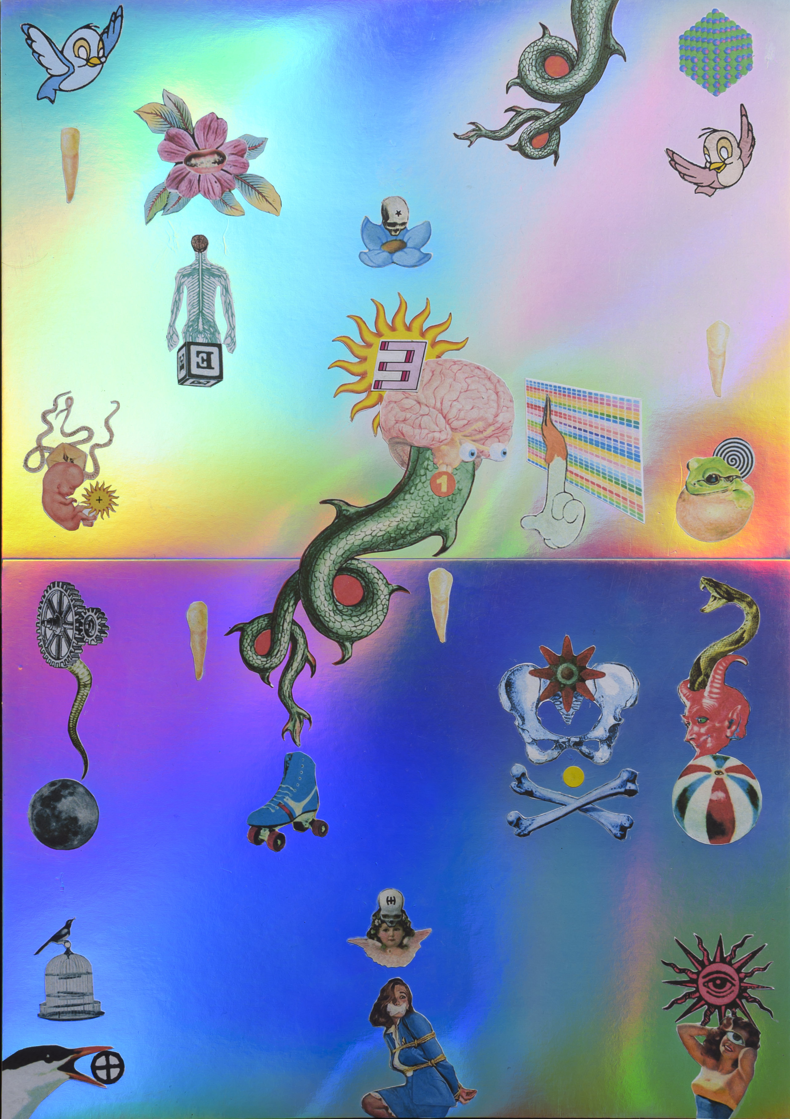Le opere in mostra attraversano l'intera storia dell'arte occidentale, da Bosch al Grande Vetro di Duchamp, senza che il percorso sia mai lineare. Ogni frammento porta con sé la propria storia e insieme se ne distacca, sottoponendosi a una rideterminazione semantica che non chiede permesso all'originale. Ogni immagine prelevata appartiene a uno strato, ha le proprie regole di formazione, e il collage non la traduce: la espone nella sua discontinuità, leggibile e irriducibile al tempo stesso.