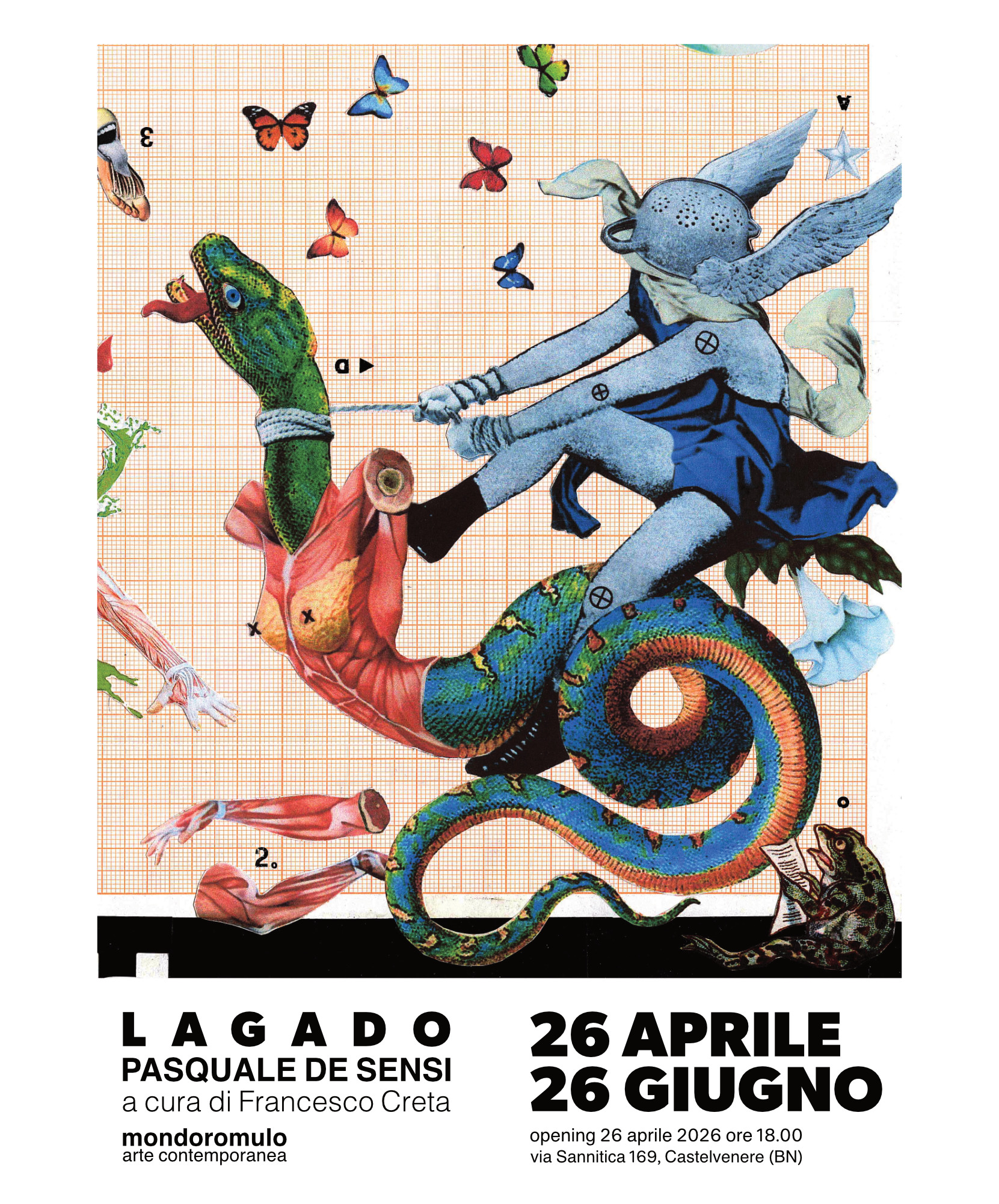 Mondoromulo arte contemporanea è lieta di annunciare LAGADO, personale di Pasquale De Sensi che inaugura domenica 26 aprile 2026 alle ore 18:00 a Castelvenere (BN). La mostra sarà visitabile fino al 26 giugno 2026.