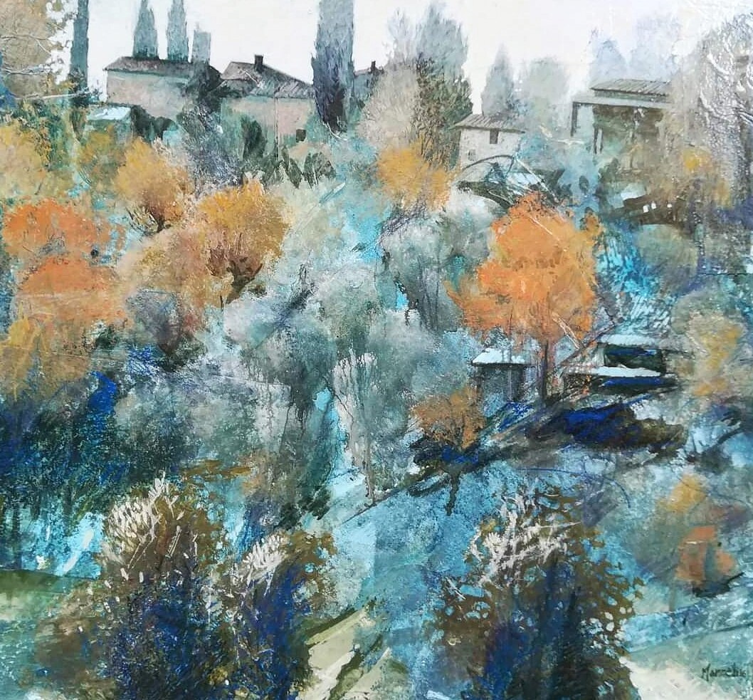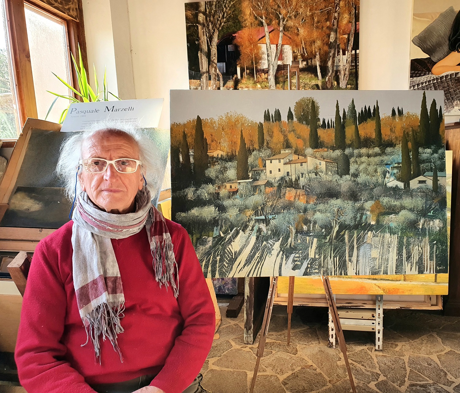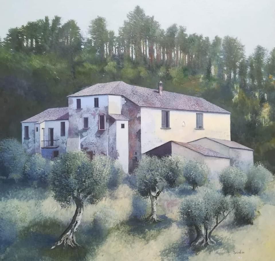 Marzelli esprime l’amore per l’ambiente agreste, la nostalgia per un passato fatto di cose semplici, la complessa rielaborazione dello spazio prima destrutturato e poi ricomposto, la capacità di rinnovare con originalità un tema come il paesaggio, ricollegandolo alla transitorietà della vita.