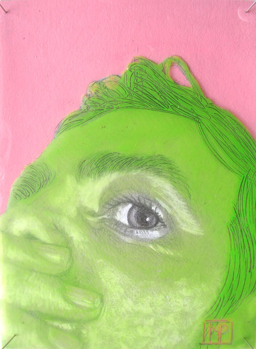 Non solo la produzione attuale, ma l’intero percorso di Pasquale Musone è volto ad una ricerca di spiritualità, a partire dai lavori dei primi anni ’90, nei quali l’azione combinata del movimento e della luce – una luce abbacinante che scolora le superfici – conduce allo svuotamento della materia corporea. Questa linea di ricerca subisce un’accelerazione dal 2010, quando l’artista opera una scissione tra il disegno, sinonimo di purezza, e la pittura ad olio, che rinvia alla sfera dell’apparire, all’immagine esteriore che si costruisce, si modifica, si trasforma grazie alla reciproca ‘contaminazione’ con l’ambiente esterno. La scissione avviene mediante la sovrapposizione di fogli di acetato, dipinti ad olio con accesi cromatismi, su cartoncini disegnati con tratto morbido e delicato. L’acetato assume una duplice funzione: da un lato si lascia attraversare dalla luce, stabilendo un legame visivo tra il dentro e il fuori, l’anima e il corpo; da un altro introduce un elemento di disturbo poiché offusca il disegno sottostante.