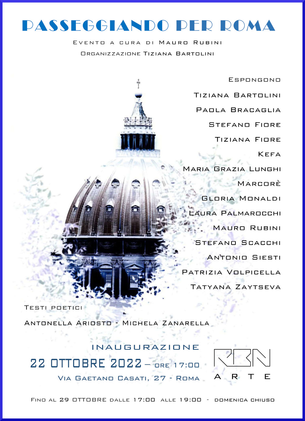 Giunto alla Terza Edizione, l’Evento artistico “Passeggiando per Roma” è inserito tra le manifestazioni della Rome Art Week 2022 di cui l’artista ed architetto Mauro Rubini è anche Curatore d’arte.