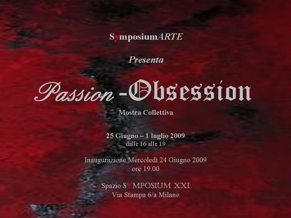 Prima Mostra della Trilogia “I Colori dell’Anima”, “Passion-Obsession” scopre il sottile confine tra passione ed ossessione, tra amore e pazzia. Quindici artisti espongono le loro opere.