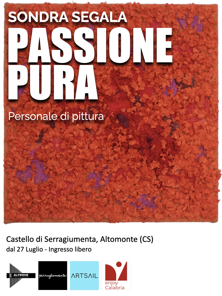 La personale di Sondra Segala, nell’ambito del progetto “Altrove – Galleria diffusa ed itinerante” di Sayato, trova spazio nelle stanze del Castello di Serragiumenta, dimora storica calabrese del 1600, in un felice connubio fra arredi d’epoca e arte contemporanea