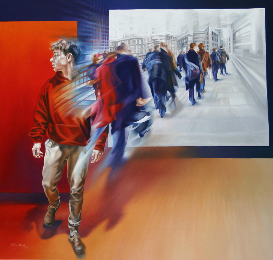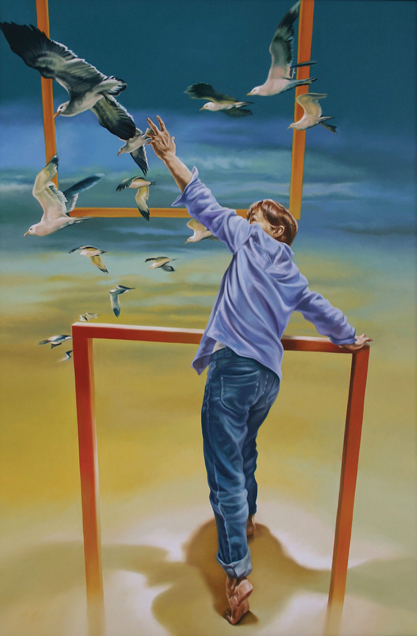 L’artista ha liberato i suoi personaggi ritraendoli in spazi aperti che consentono una maggiore possibilità di azione, in Galleria un ciclo di dipinti realizzati ad olio su tela di medie e grandi dimensioni.