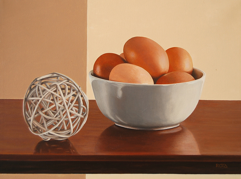 Osservando le opere di Patrizia Rota si avverte una pittura che si spinge dentro il naturalismo in una sfera di iper-realtà che sconfina in una rappresentazione quasi metafisica: non semplice realismo ma rielaborazione del vero in maniera rigorosa, una particolare armonia governa i dipinti, gli elementi rappresentati, coordinandone le cromie, quasi come in un flusso musicale.