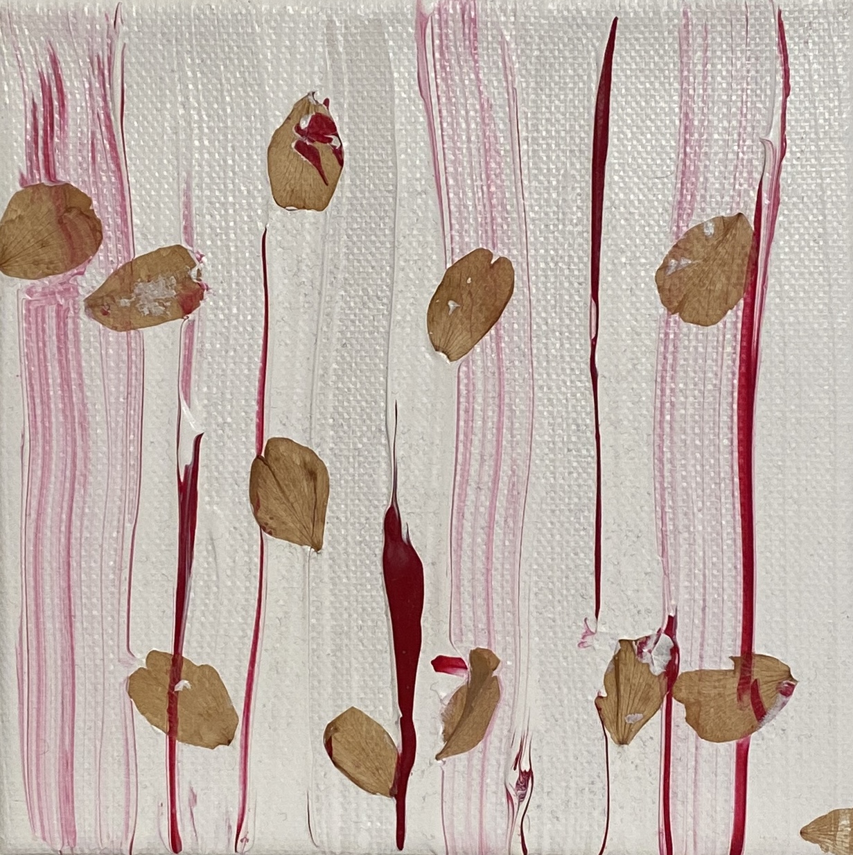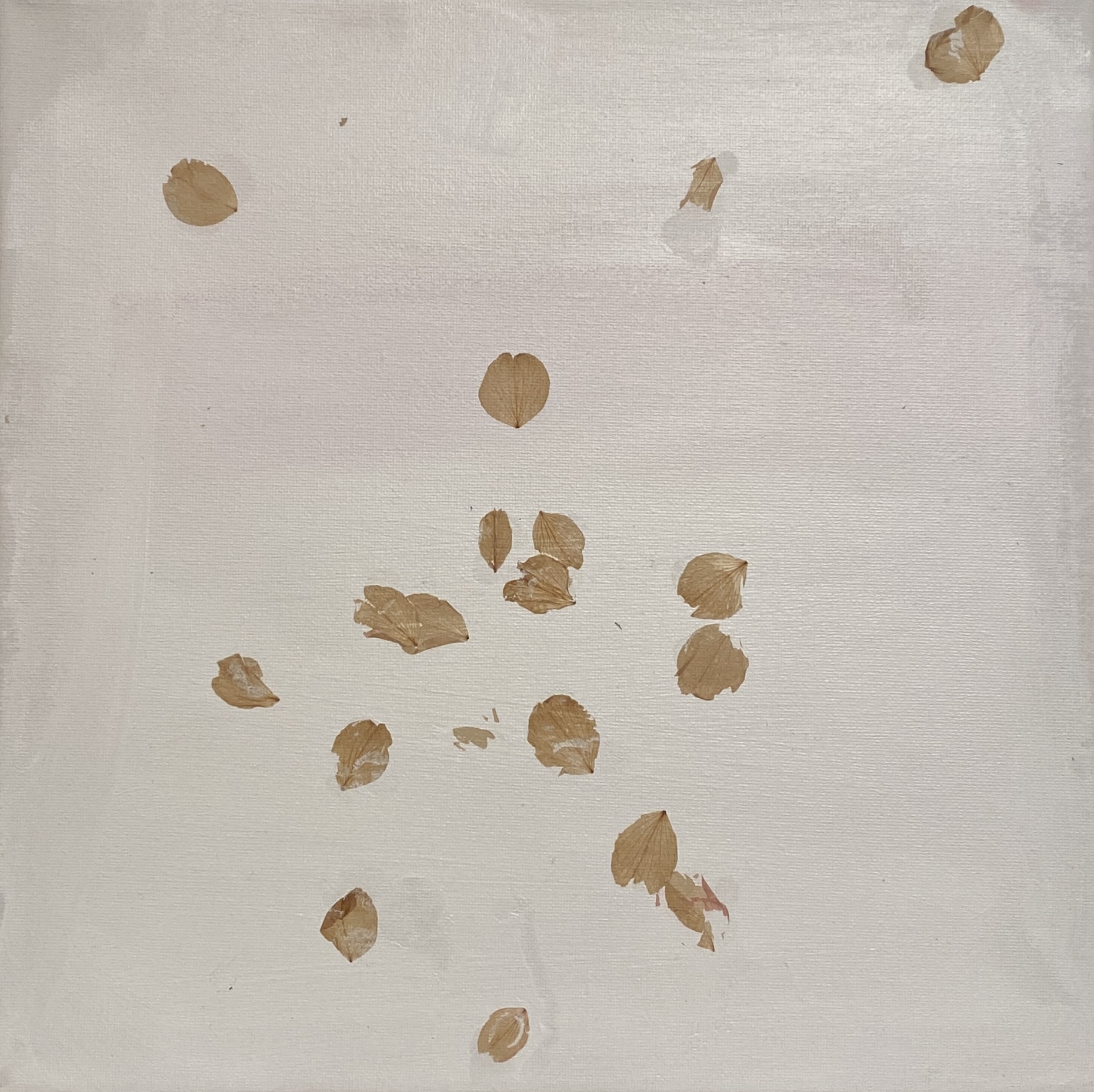 La ricerca artistica di Patrizia Schettino si configura come un delicato esercizio di "archeologia del presente", dove la pittura abbandona la pura finzione rappresentativa per farsi custode della materia organica. Al centro della sua indagine si pone un dialogo profondo con la filosofia giapponese, in particolare con il concetto di Mono no aware: quella partecipazione emotiva alla bellezza fugace delle cose, intrisa di una consapevolezza serena della loro caducità. Nelle sue tele, il pigmento acrilico non si limita a occupare lo spazio, ma diventa l'alveo vitale in cui si incastonano petali di ciliegio, foglie o infiorescenze che, seppur sottratti al ciclo biologico, conservano intatta la loro carica evocativa.