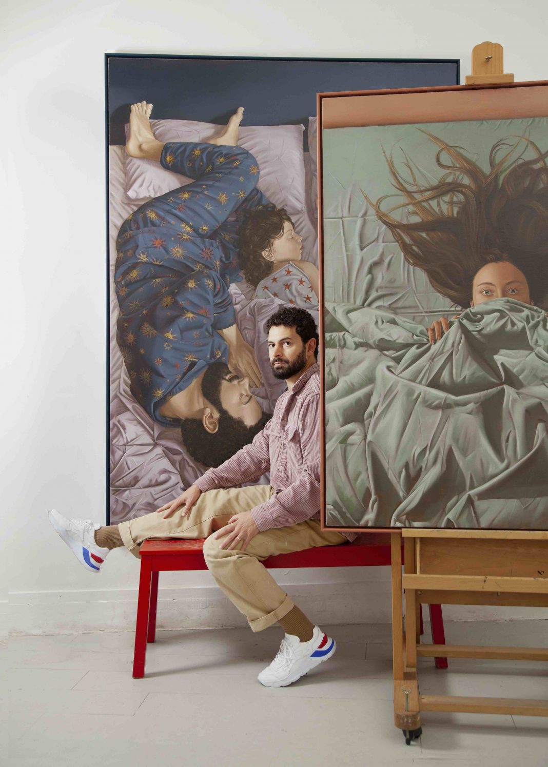 In occasione della mostra l’artista ha realizzato un grande trittico ispirato alla Deposizione di Lorenzo Lotto, presente nella collezione di Palazzo Pianetti, e un autoritratto intimo per Palazzo Bisaccioni, che si confronta con i celebri artisti del passato presenti nella collezione d’arte antica.