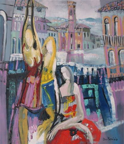 Le case, i borghi e gli agglomerati urbani prendono forma dall’intreccio tra la realtà e la vivida fantasia del suo creatore. Ed è così che le linee verticali e nette di un edificio si flettono all’improvviso fino ad incurvarsi, rettangoli e triangoli di colore ne dettano la scomposizione e ri-costruiscono il nuovo paesaggio urbano, introducendo l’osservatore in una vivida atmosfera di sogno