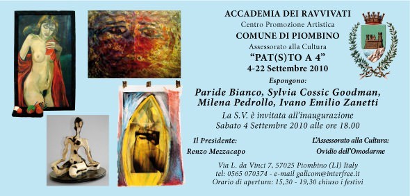 ”Pat(s)to a 4” è il titolo della mostra del Gruppo SEDNA che l’Accademia dei Ravvivati del Comune di Piombino propone al pubblico dal 4 al 22 settembre 2010.