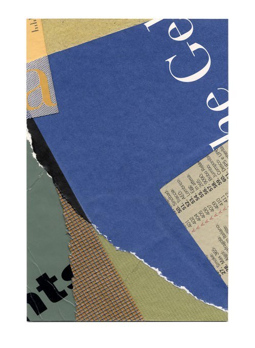 I miei collages sono espressione su carta della collisione esteticamente armoniosa delle cose effimere, appartenenti a culture diverse; sono espressione di forma e colore, di aspetto astratto del linguaggio e di margini sciupati e lacerati; sono espressione di cose inconsapevolmente prodotte da macchine e di cose trovate per strada, nei cestini di rifiuti o nelle cassette per la posta; sono espressione del piano/non piano e delle instabili ambiguità dello spazio percepito e di come tutto questo confluisca a formare un ordine intuitivamente strutturato, in una piccola parte di un mondo già di per sé frammentato.