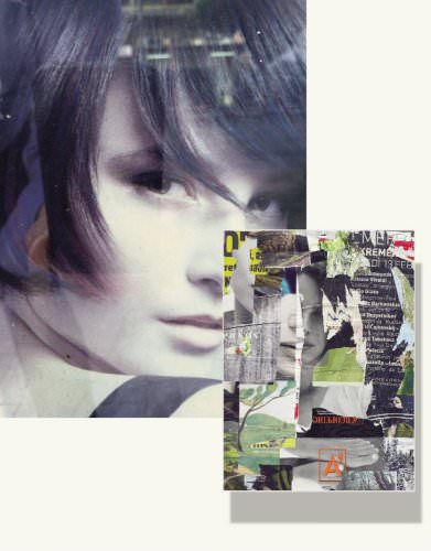 Bright says: ‘Skin in the game is a play on the business term, and on skin and surfaces as commodities; how beauty, bodies, and faces are used to sell things. But it also refers to the torn and disrupted surfaces of the de/collages and the distortions and reflections depicted in the digital prints. We wade into a world awash with images, and David and I grab what we can make use of from the ebb and flow. Both of us are interested, I think, in taking these images -mere representations- and making them things again; objects capable of eliciting fresh responses, hopefully.’