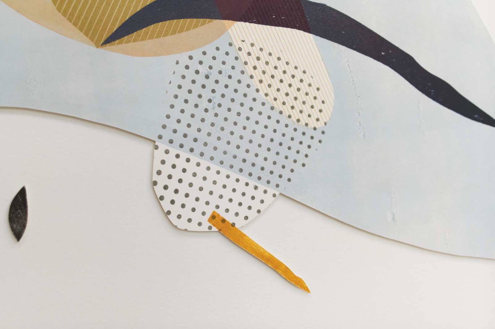 L’allestimento per la Galleria Macca comprende anche due sculture in gesso e altri materiali che ripropongono le forme dei lavori su carta portandole a una terza dimensione ed esasperandole. A completare l’esposizione ci sono dei multipli editati in serigrafia, una piccola cartella di tre opere che gioca con le forme delle opere uniche su carta.