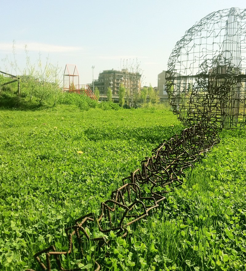 Accompagnati dai suoni dell’ensemble del Gruppo Musicale Valentino Studio, diretto dal Maestro Zunino, daremo il benvenuto a una nuova opera nel parco: l’installazione in ferro Tre quarti di sfera con coda di Luigi Mainolfi ha steso le sue curve zoomorfe sul prato del PAV offrendosi all’esplorazione degli occhi e della mani.