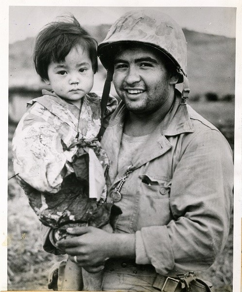Il percorso si snoda tra diverse icone della Seconda guerra mondiale – lo scatto a Iwo Jima di Joe Rosenthal; gli istanti della resa giapponese; l'immagine di Nagasaki rasa al suolo dalla bomba atomica – e le molte foto scattate con l'intento di narrare le forze alleate che interagiscono positivamente con i civili, persino in situazioni di ozio e di svago sullo sfondo di luoghi e paesaggi fortemente caratterizzati.