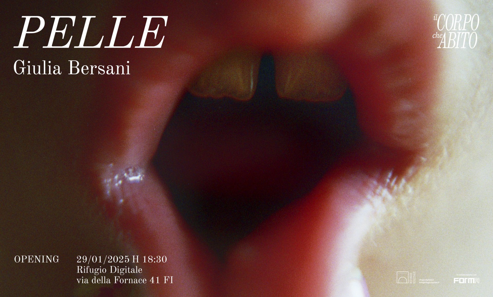 "Il Corpo che Abito", terzo ciclo espositivo del Rifugio Digitale dedicato alla fotografia contemporanea, è un’indagine sul corpo come elemento fondante dell’essere umano – materia viva che resiste alla virtualizzazione delle esistenze e dei processi creativi – con uno sguardo rivolto, in armonia con i temi già trattati dalla galleria, al dialogo tra il “dentro” (la dimensione intima e introspettiva) e il “fuori” (le architetture fisiche e sentimentali che costruiamo).