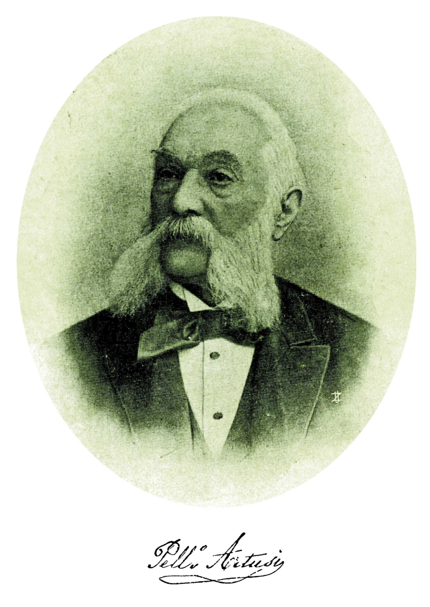 Pellegrino Artusi, padre riconosciuto della moderna cucina italiana e grande divulgatore della lingua italiana, nasce a Forlimpopoli il 4 agosto 1820. Dopo gli studi comincia ad occuparsi degli affari paterni e quindi a viaggiare nelle varie regioni della penisola italiana. A circa trent’anni Artusi e la famiglia si trasferiscono a Firenze che dista poco più di 100 km da Forlimpopoli. Artusi gode di vita agiata e intorno ai 50 anni può cominciare a occuparsi a tempo pieno delle sue passioni, la cultura e la cucina. Muore a 91 anni il 30 marzo 1911 a Firenze.