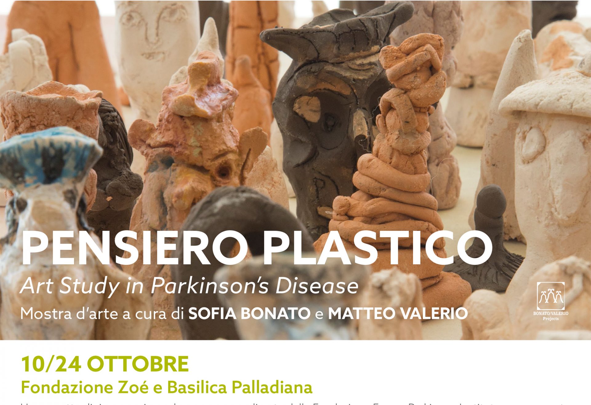 La Mostra raccoglie opere create durante un programma di workshop di arte partecipatoria creato dal duo di artisti Bonato e Valerio che coinvolge persone con malattia di Parkinson. Ci invitano ad una riflessione sul connubio tra arte e neuroscienze e sulla sua funzione all’interno della società.