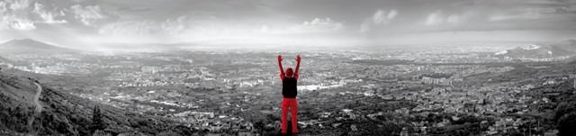 Il pittore-scultore Livio Marino Atellano nella sua immagine-simbolo provoca e stimola ad una profonda ed amara riflessione. Di spalle, braccia alzate e mani ben aperte, sguardo rivolto alla “città invisibile” che si espande dal Vesuvio fino a Caserta, avverte e certifica: prima che davanti alla Polis snaturata alzi le mani l’uomo del nostro tempo, almeno la poesia (quindi l’arte e la cultura) restituiscano il senso perduto dell’essere cittadini del mondo.