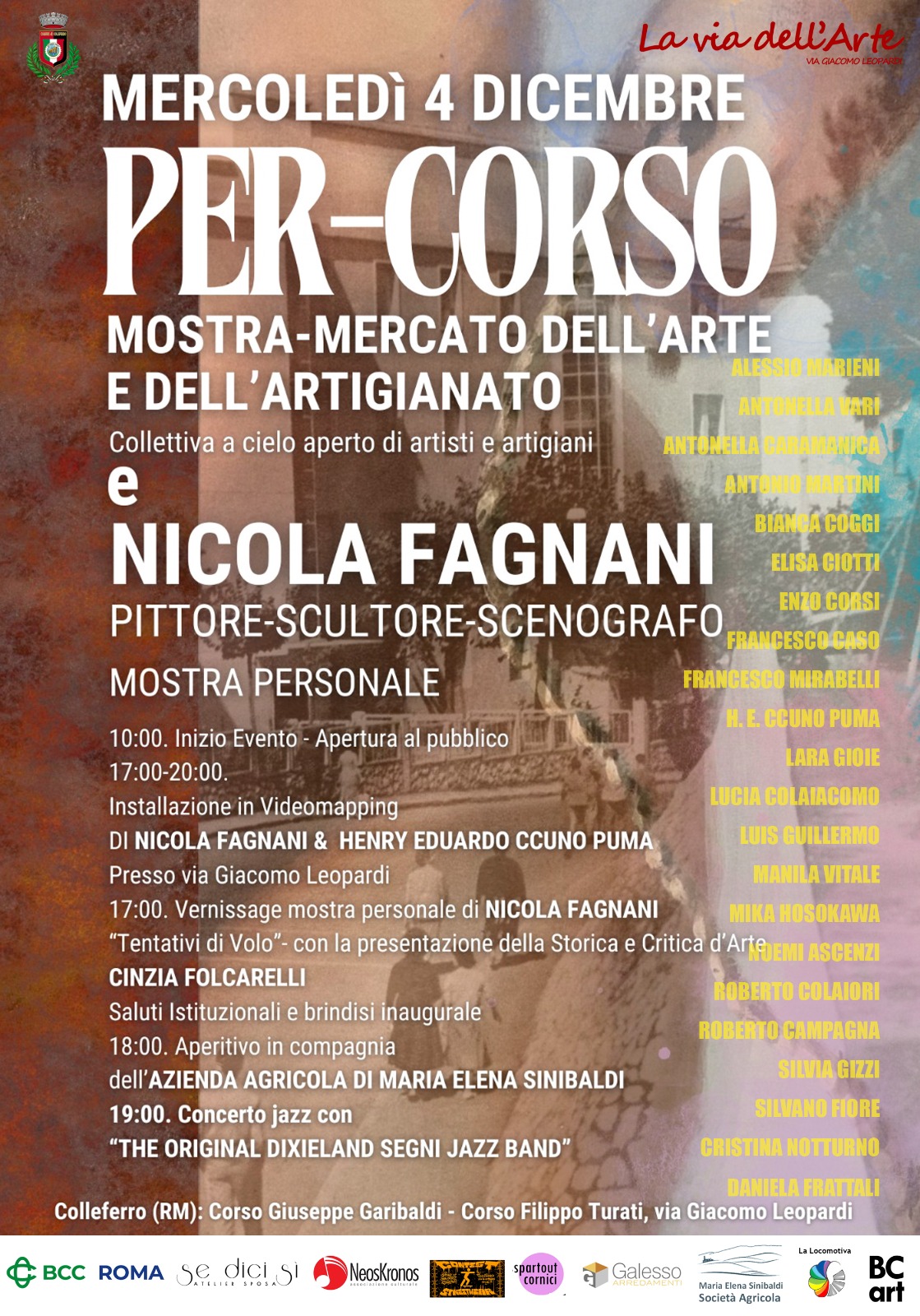 “PER-CORSO”, Mostra-Mercato collettiva dell’Arte e dell’Artigianato e mostra personale di Nicola Fagnani, Pittore, Scultore e Scenografo