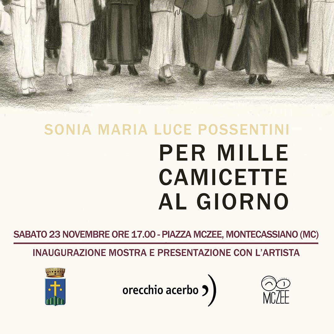 Sabato 23 novembre alle 17.00 presso lo spazio espositivo Piazza McZee (Montecassiano) inaugura la mostra Per mille camicette al giorno, personale dell’artista Sonia Maria Luce Possentini. Contestualmente sarà presentato il volume per cui le tavole sono state realizzate (Orecchio Acerbo editore, 2024).