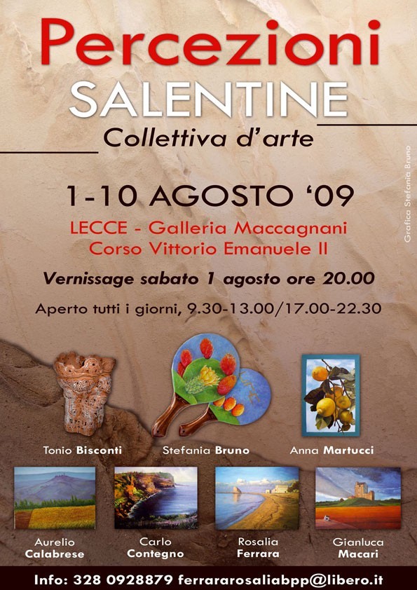 Si inaugura sabato 1 agosto alle ore 20,00 la collettiva d’arte “Percezioni salentine” ospitata dalla Galleria Maccagnani (Corso Vittorio Emanuele II, Lecce)sino al 10 agosto.