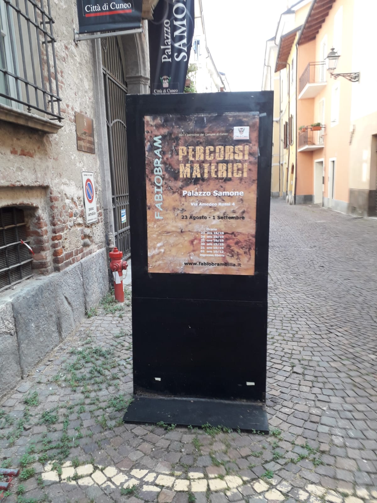 Desidero ringraziare il Comune di Cuneo per la disponibilità del bellissimo Palazzo Samone e ringraziare la gentilezza dell’assessora Franca Giordano oltre al dirigente di settore Giraudo Bruno (straordinari) intervenuti all’inaugurazione e tutta Cuneo ricordando che la mostra sarà ancora visitabile sia venerdì 30 che sabato 31 . Fabiobram