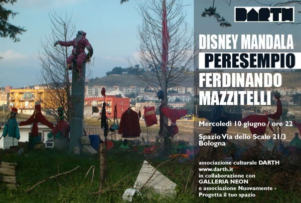 Ferdinando Mazzitelli, in occasione dell’evento Il Falso Oreste, presenta nel progetto Peresempio di Darth Disney Mandala 2006/2009, un intervento che riflette sulla riduzione degli spazi di esperienza e di memoria nella società contemporanea. Innumerevoli provini di scatti realizzati alle famiglie di tutto il mondo da uno dei tanti Pippo in azione all’interno di Disneyworld disegnano un panorama di serialità comportamentale dove è stata espulsa ogni possibile deroga alla norma. Quei volti sorridenti, sempre diversi eppure così uguali, sembrano il risultato di un levigatura che ha annullato i segni più caratteristici dell’individualità, quelli che rendono tangibile un vissuto. È un circolo vizioso in cui si espelle lo spessore di una dimensione spirituale per realizzare l’incubo di un presente perpetuo e unanime.