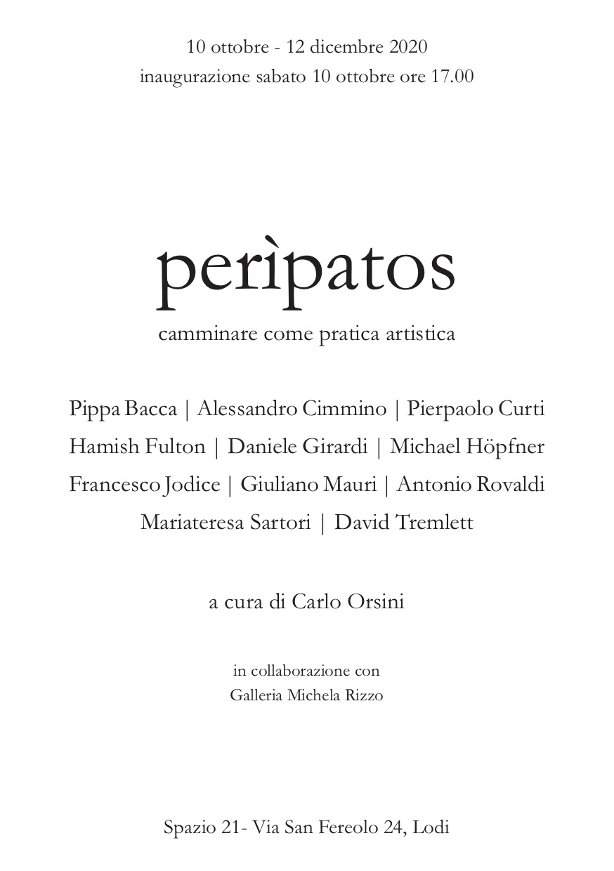 Camminare come pratica artistica, mostra collettiva a cura di Carlo Orsini con opere di Pippa Bacca, Alessandro Cimmino, Pierpaolo Curti, Hamish Fulton, Daniele Girardi, Michael Höpfner, Francesco Jodice, Giuliano Mauri, Antonio Rovaldi, Mariateresa Sartori e David Tremlett.