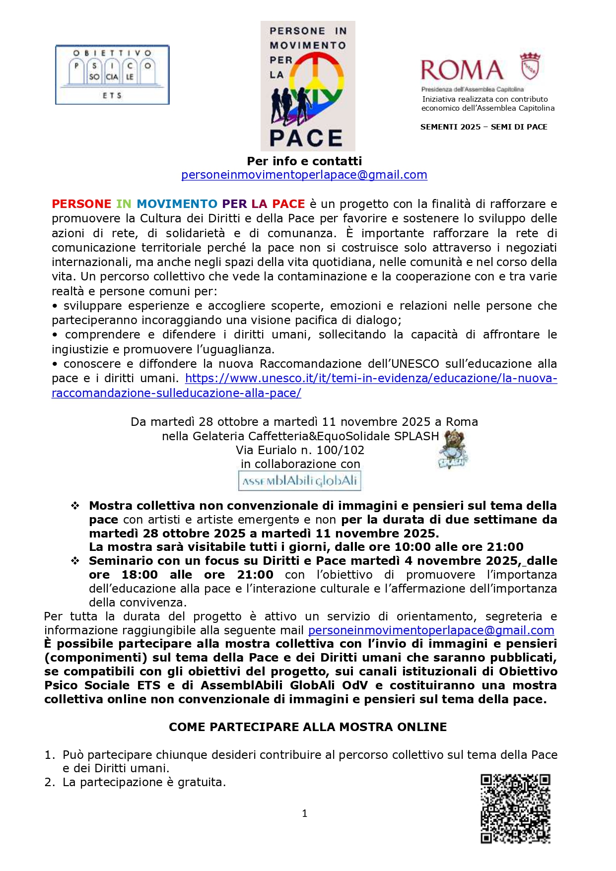 Per partecipare alla mostra online scrivi a personeinmovimentoperlapace@gmail.com