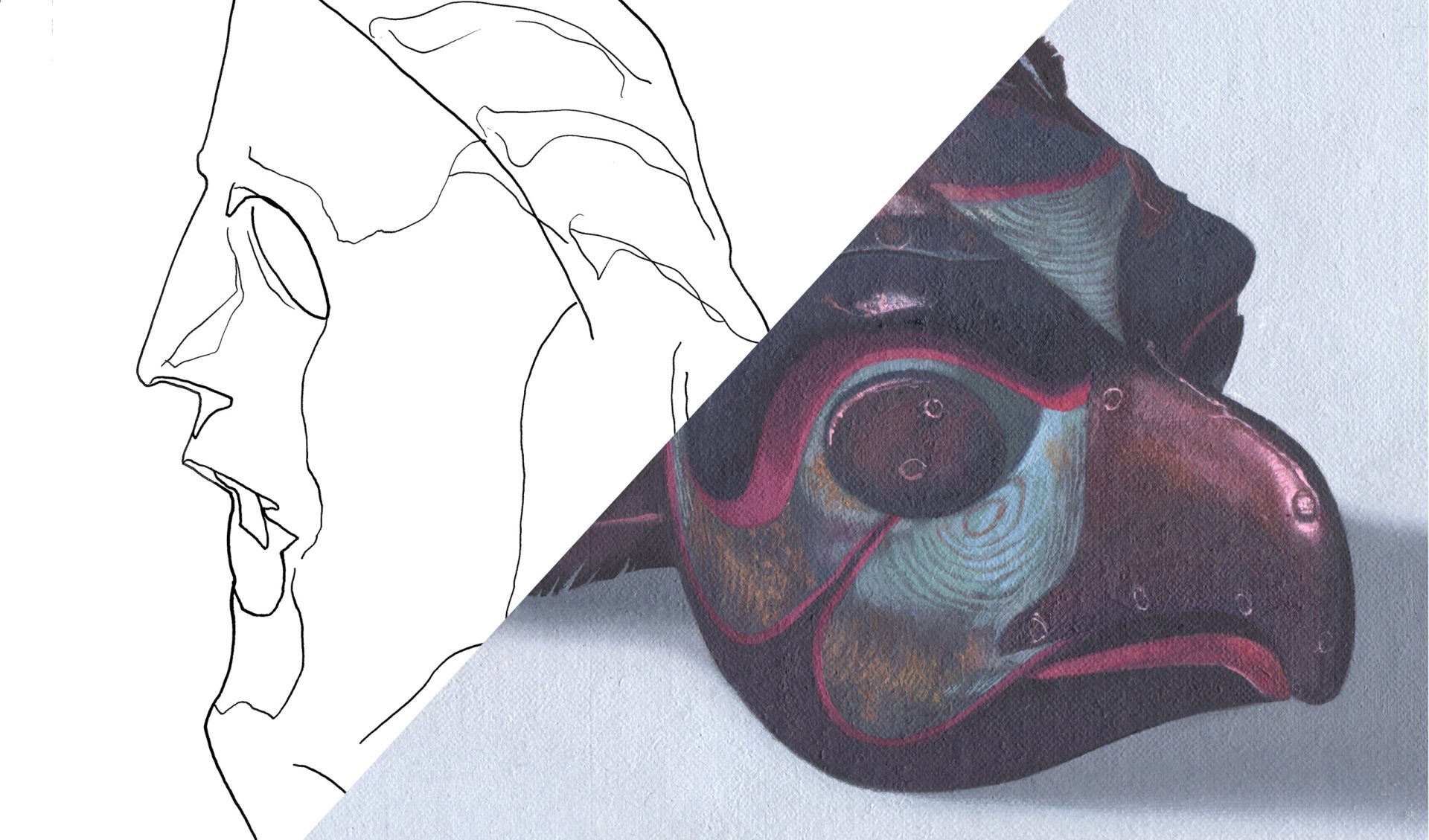 I dipinti Gabriele Grones sono intensamente elaborati sia dal punto di vista concettuale che per la tecnica pittorica. Le sue opere sono il risultato di una ricerca approfondita, in particolare sulla storia dell'arte, antropologia e iconografia. Attraverso le sue opere, Grones si concentra sulle connessioni tra culture diverse, approfondendo antichi rituali attraverso l'analisi pittorica di simboli, oggetti, dettagli naturali, figure e composizioni. Per questa occasione ha creato una serie di maschere meticolosamente dipinte di tribù di nativi americani, provenienti dalle collezioni del Metropolitan Museum of Art.