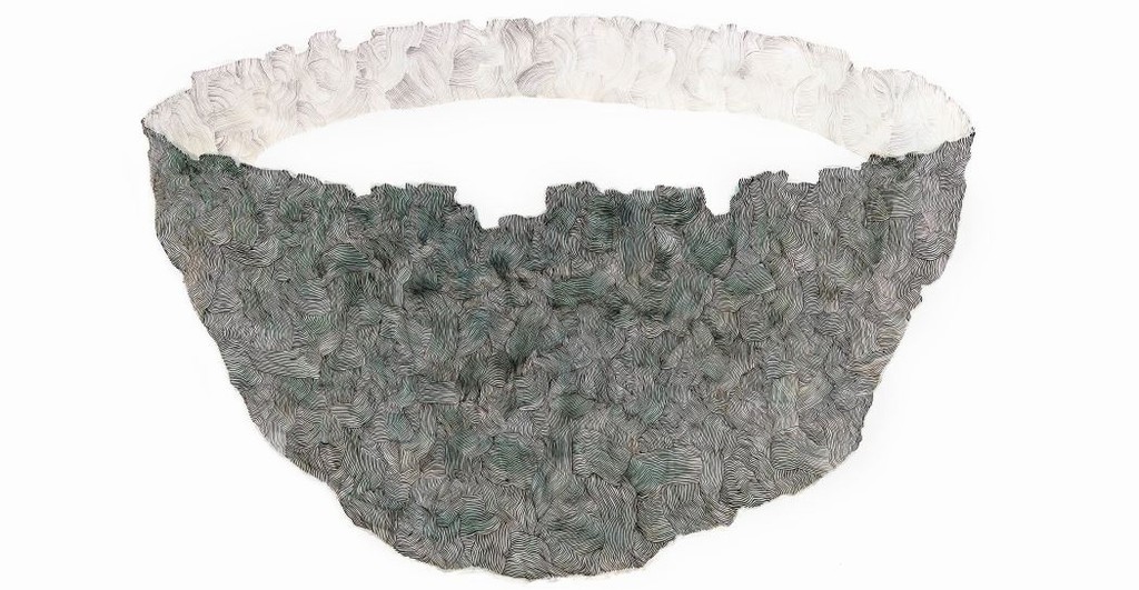 Kim sceglie la linea come codice di accesso alle pieghe più profonde del reale. Nel suo lavoro la linea ripetuta è usata come un mantra visivo, un’ossessione gestuale che incide nello spazio e costruisce una ragnatela a cui annettere il reale. Come la goccia che scava la pietra, o come un suono che si espande in gorghi, le linee s’infittiscono fino a coprire il vuoto, recingendolo e dandogli il contorno da cui la figura emerge.
