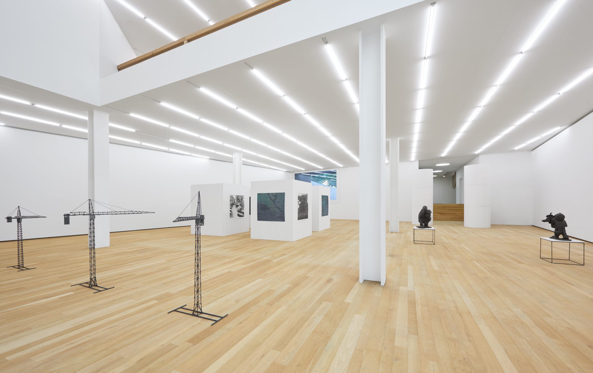 Nella grande sala al piano terra la mostra presenta tre serie di sculture, un ciclo di fotografie in bianco e nero e una serie di acquerelli.